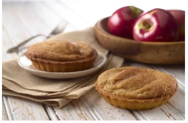 Short pastry base filled with sliced apples, topped with a buttery crumb and almond cream.