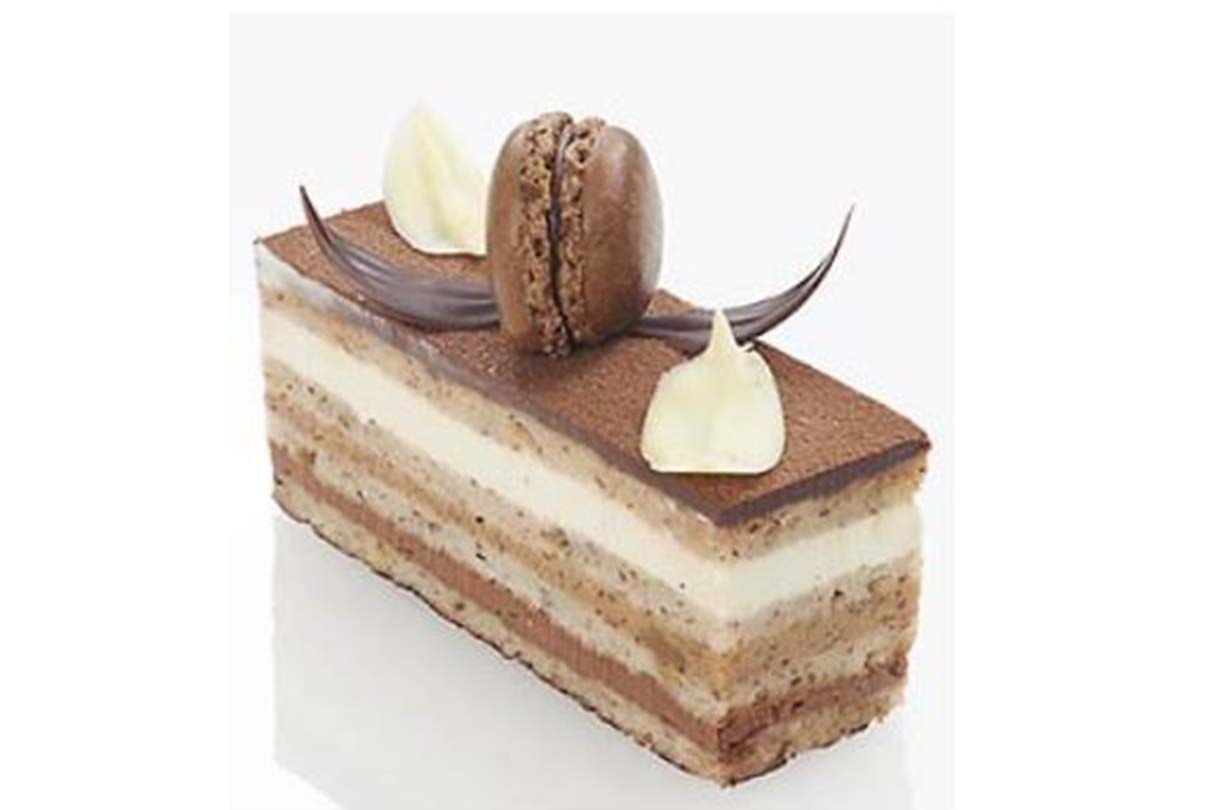 Four layers of hazelnut dacquoise, one layer of vanilla mousse, one layer of praline mousse and one layer of chocolate mousse – GLUTEN FREE