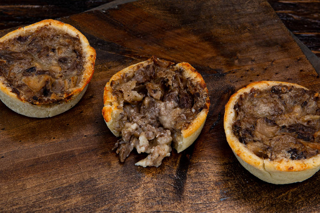 Butter poached wild mushroom medley and gourmet French cheeses melded together in a savory handmade pastry cup.