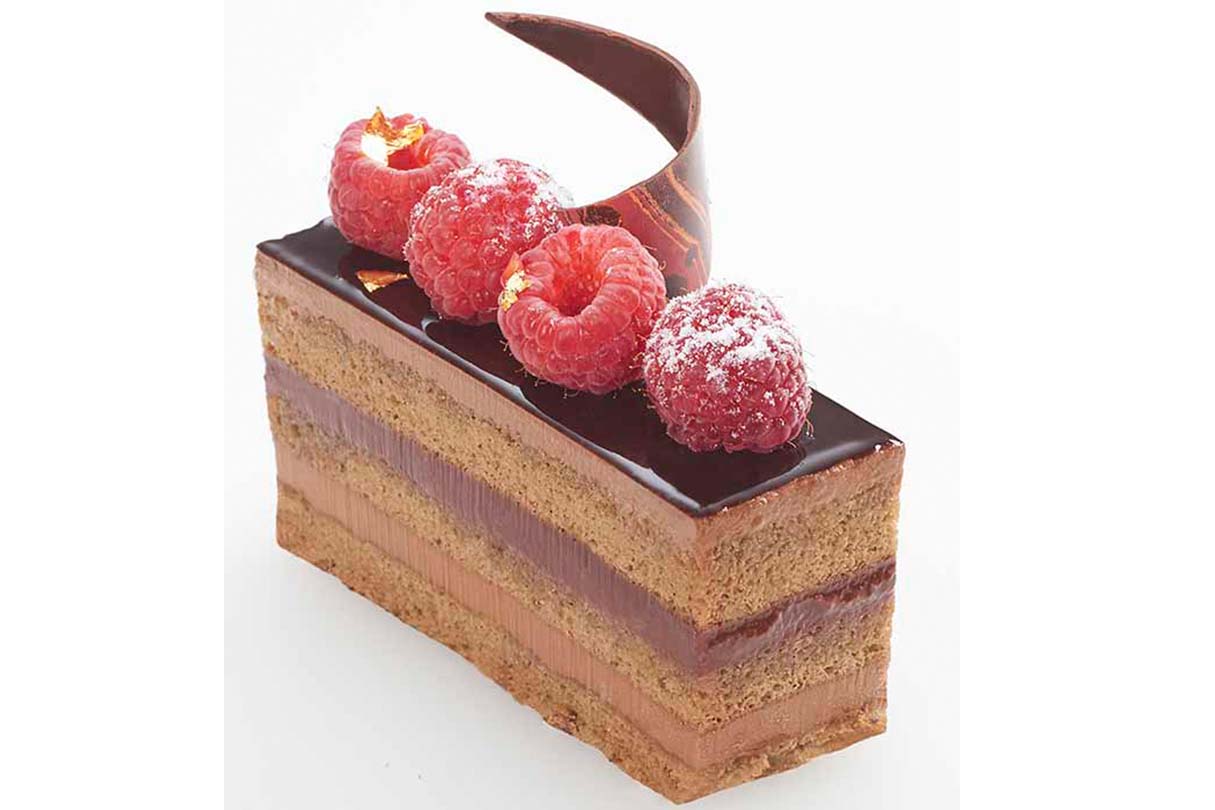 Bittersweet chocolate mousse with layers of raspberry ganache