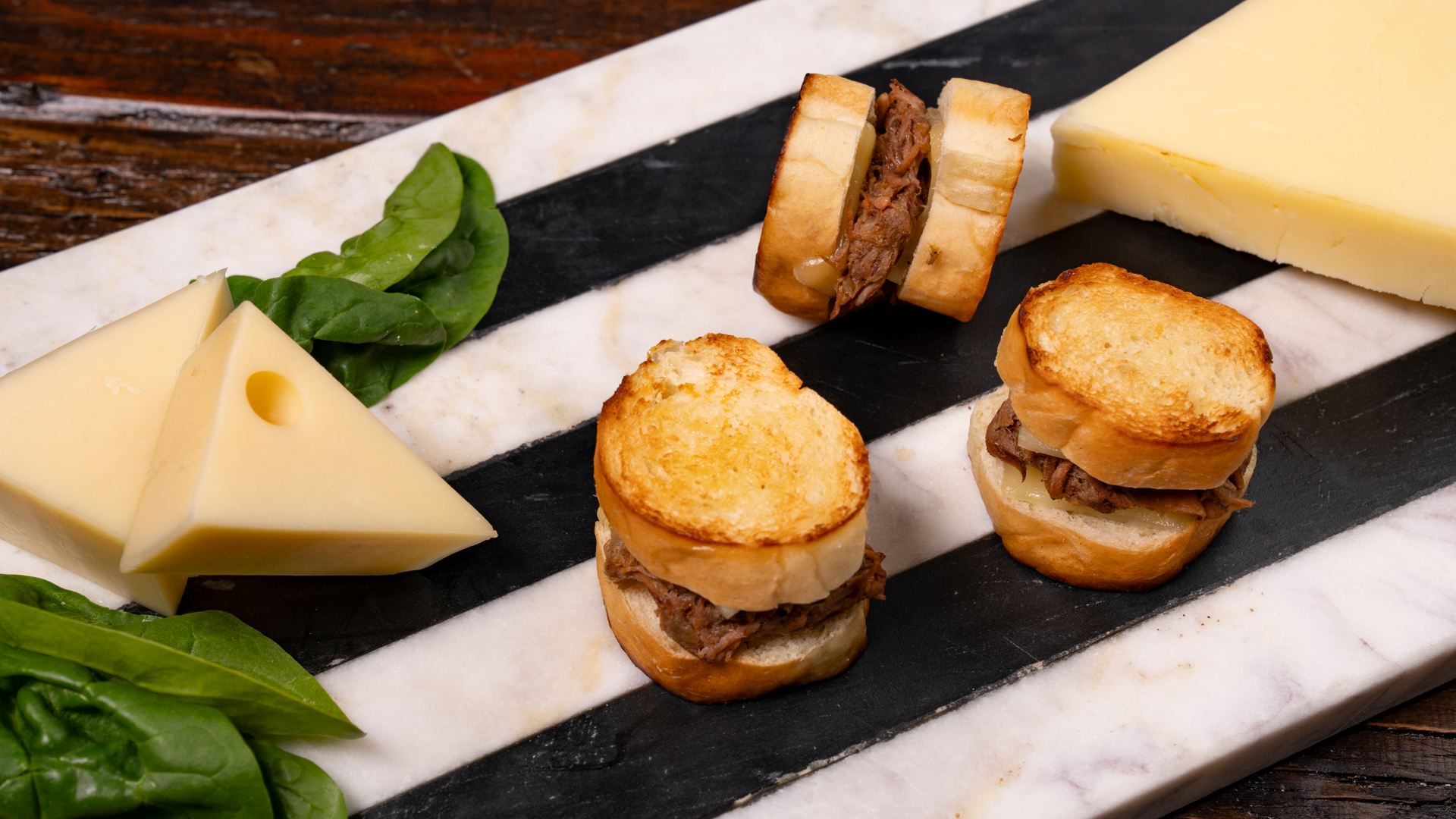 House-braised short rib tossed in a rich demi-glace piled high with aged fontina cheese between slices of crisped baguette slices